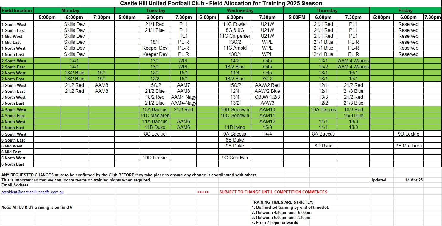 Training Schedule